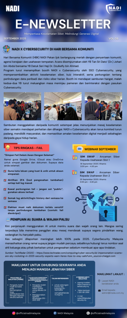 NADI dengan kerjasama CyberSecurity Malaysia menjemput anda mengikuti Webinar September bertajuk: