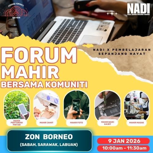 Jom sertai Forum MAHIR bersama Komuniti untuk mengetahui lebih lanjut tentang Program Mahir Intake 3. Peserta berpeluang untuk memenangi hadiah cabutan bertuah sekiranya peserta hadir ke NADI pada hari & masa forum tersebut dilangsungkan: